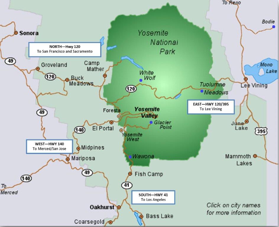 For a map of Yosemite National Park and the surrounding area, please click here.